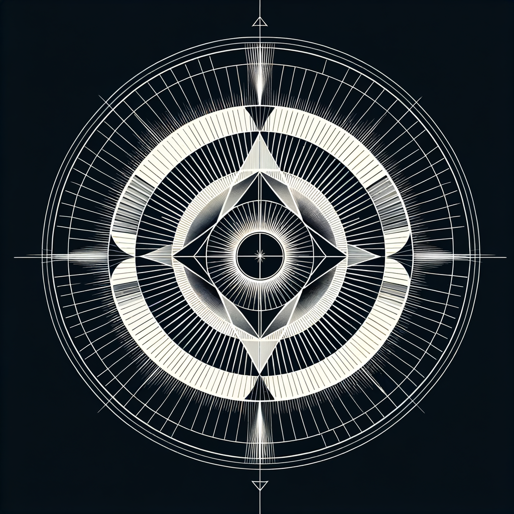 The next layer, representing Light, is made up of radiating geometric lines that expand outwards from the Water symbol. The lines, precise and thin like beams of light, create an effect of illumination or light radiating from the core, embodying clarity, illumination, and knowledge.